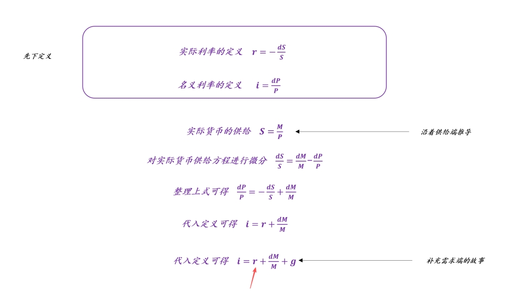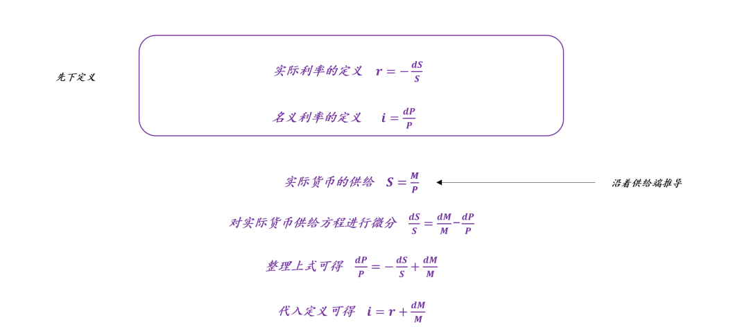 上图是推导过程,不难发现,我们重新定义了名义利率i=dP/P,它由两部分所构成: